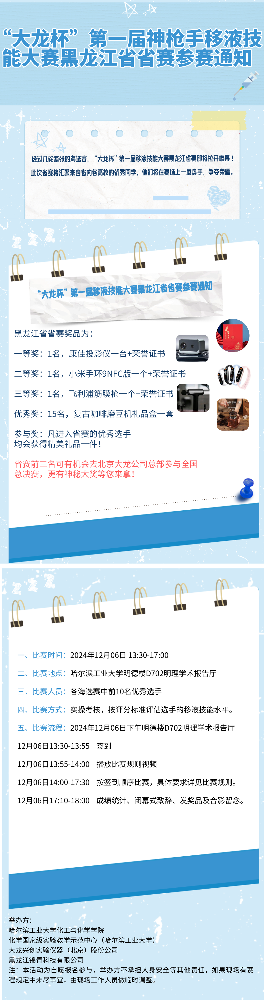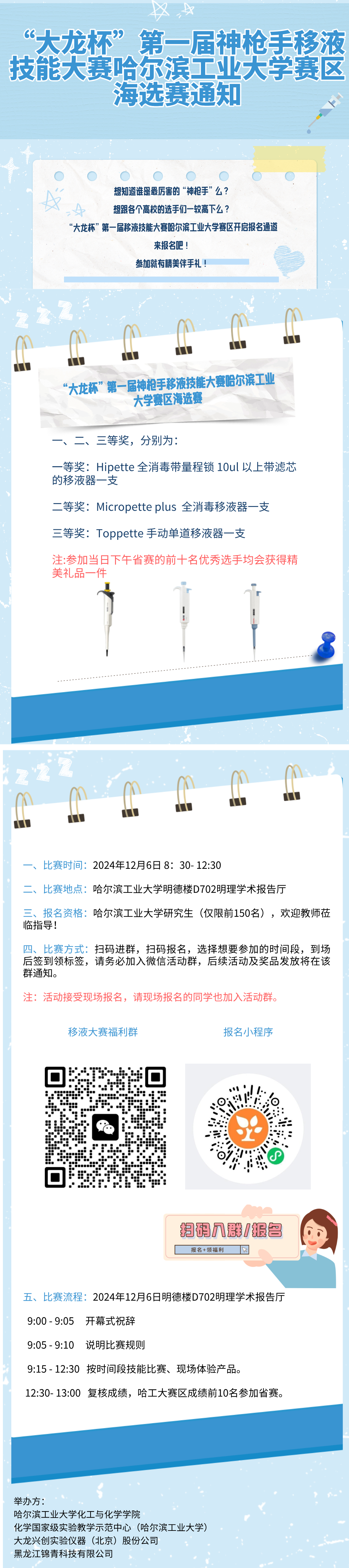 【通知 大赛】“大龙杯”第一届移液技能大赛哈工大赛区海选赛与黑龙江省省赛参赛通知