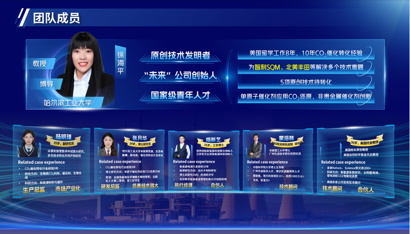 徐海平教授团队“低温电解槽单原子催化CO2转化技术”能够利用可再生电力能源作为电源,通过低温电解槽技术直接一步将CO2作为原料电催化转化为高附加值化学品。该技术可以做到一步转化,降低碳排放强度,根据CO2碳源大小可模块化设计和应用、快速响应间歇性可再生电力,稳定电网,室温下进行,在电解槽中改变不同催化剂得到不同产物。2024年5月,团队攻克锡基金属催化剂CO2转化的技术壁垒。