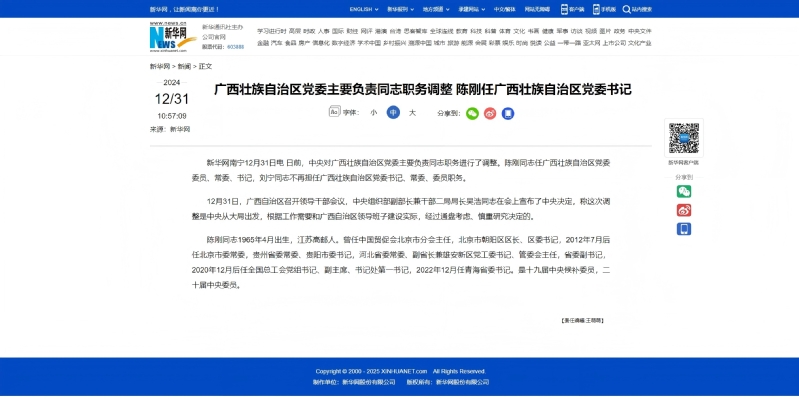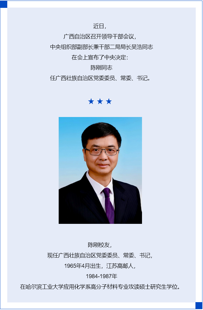 喜报丨公司员工陈刚任广西壮族自治区党委委员、常委、书记