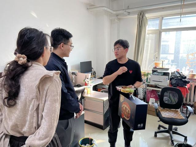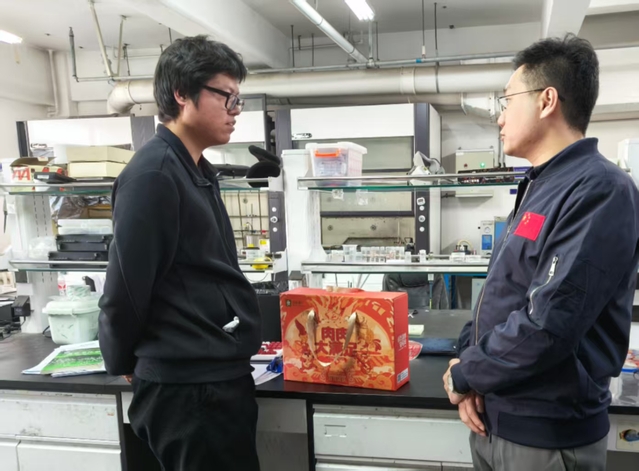 孙永川在走访寝室时提醒同学们假期期间要注意出行安全、谨防电信诈骗等,增强安全意识;在走访实验室时关心员工课题进度,叮嘱同学们要合理安排时间、注意劳逸结合。