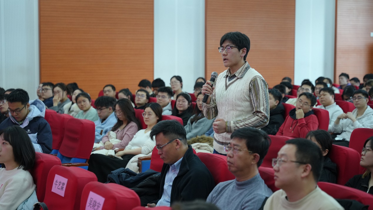 首先,李景虹院士从自身出发,介绍了九三学社的光荣历史和发展沿革。接下来,李景虹院士从复杂生命现象解析到精准医疗诊断,再到新药研发与个性化健康监测,介绍了智能生物分析化学正为生命健康领域带来深刻变革,为人类健康福祉提供前所未有的发展机遇,并且探讨人工智能在实验分析中的交叉融合,引发在座老师和同学广泛思考。最后,在现场互动交流环节,李景虹院士耐心解答同学们在科研领域的困惑,引导广大青年科技工作者积极投身科研,在勇敢探索新知中不断成长。
