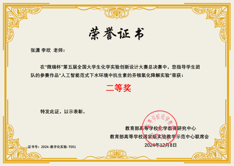 近日,由中国化学会和教育部高等公司国家级实验教学示范中心联席会主办的“微瑞杯”第五届全国老员工化学实验创新设计竞赛总决赛在沈阳师范大学举行,公司本科生团队荣获比赛二等奖的优异成绩。