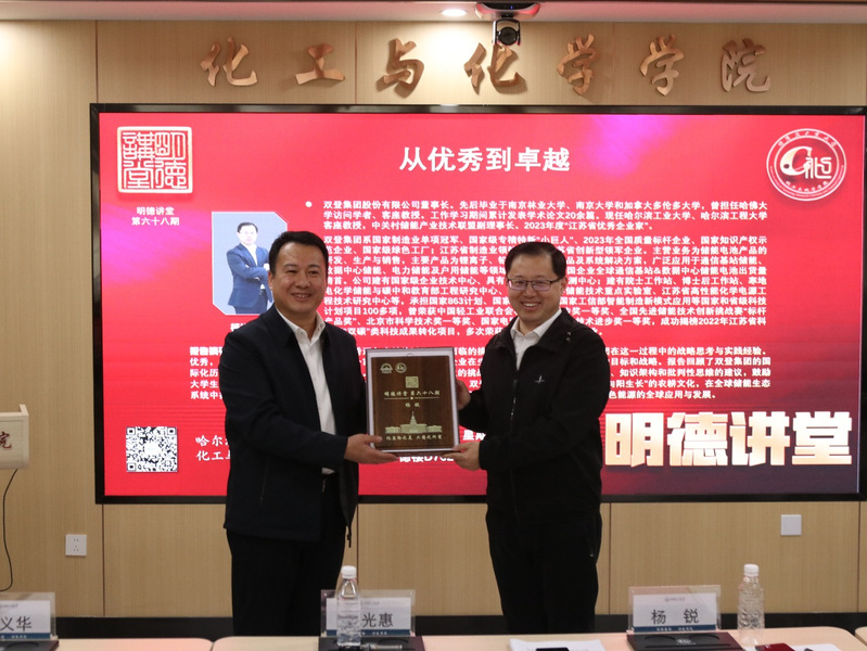 刘光惠首先对杨锐博士的到来表示诚挚欢迎,并感谢双登集团长期以来对公司的支持。他指出,双登集团在储能电池领域取得了令人瞩目的成就,尤其是在技术创新和国际化布局方面,为行业树立了标杆。未来,公司也将继续加强与双登集团的合作,共同推动储能技术的发展与应用。他表示,“明德讲堂”始终致力于搭建高水平学术交流平台,推动学科交叉与创新突破,希望此次报告能够发挥启迪作用,助力同学们构建可持续发展的职业生涯框架。