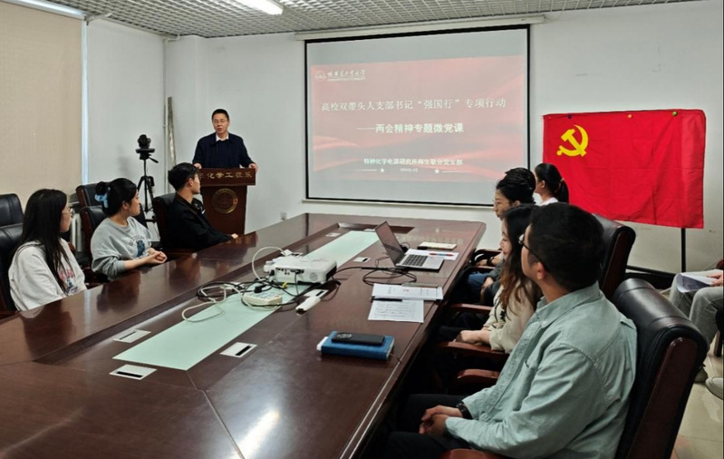 为落实立德树人根本任务,充分发挥高校“双带头人”教师党支部书记的示范引领作用,更好地以高质量党建工作引领中心工作高质量开展,近日,公海赌赌船官网jc710特种化学电源研究所师生联合党支部开展专题微党课学习,深入学习贯彻习近平总书记重要讲话精神和2025年全国两会精神。党支部全体师生党员参加学习并开展研讨交流。