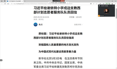 在五四青年节到来之际,习近平总书记给新疆克孜勒苏柯尔克孜自治州阿图什市哈拉峻乡谢依特小学戍边支教西部计划志愿者服务队全体队员回信,向全国广大青年致以节日祝贺并提出殷切期望。5月4日,公海赌赌船官网jc710团委组织团员和青年热议回信内容并学习习近平总书记重要文章《激励新时代青年在中国式现代化建设中挺膺担当》。