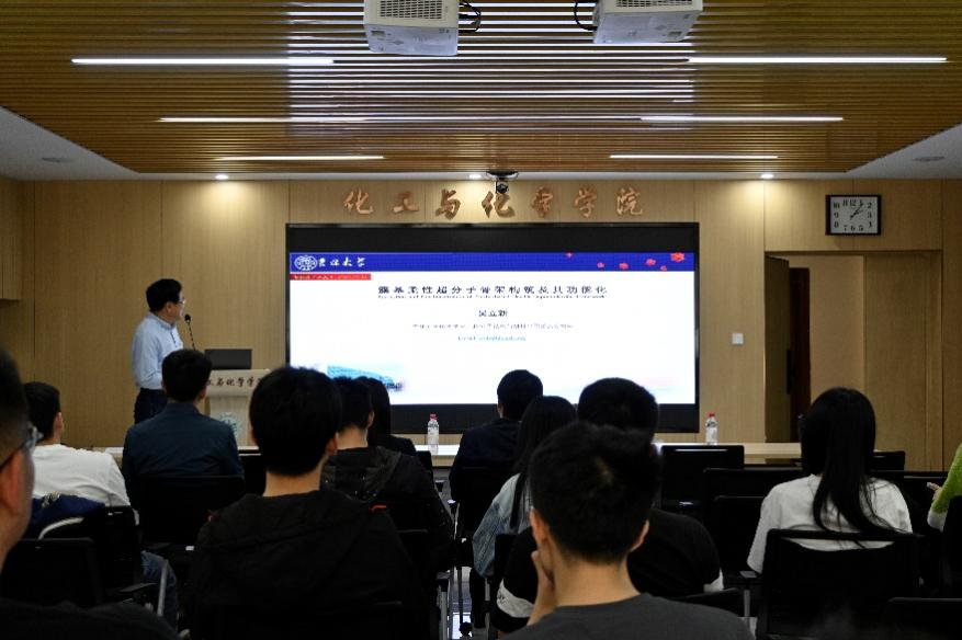 报告结束后,与会师生就相关问题展开了深入探讨。吴教授结合自己在超分子化学领域丰富的研究经验,对每个问题都给予了细致专业的解答,现场学术氛围热烈。