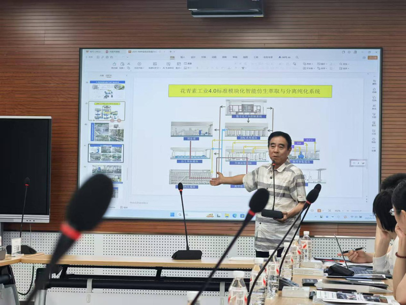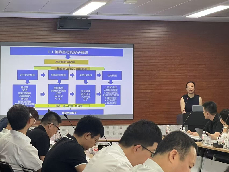 活动期间,公司特种食药与生物化工创新研究中心主任韩雪教授系统介绍了公司在特种经济作物基料高端产品研发、智能化生物制造技术、药食同源活性物质分离纯化、工业AI智能化生产线设计等领域的前沿成果。特种食药与生物化工创新研究中心创始人、首席科学家王振宇教授就其在生物经济、功能食品等方面研发成果转化案例进行详解介绍,并重点对现有中试平台和已产业转化的智能制造产线、航天技术转民用及市场畅销产品等进行示范分享。现代农业研究院重点介绍了相关生物化工全产业链项目谋划推进情况。