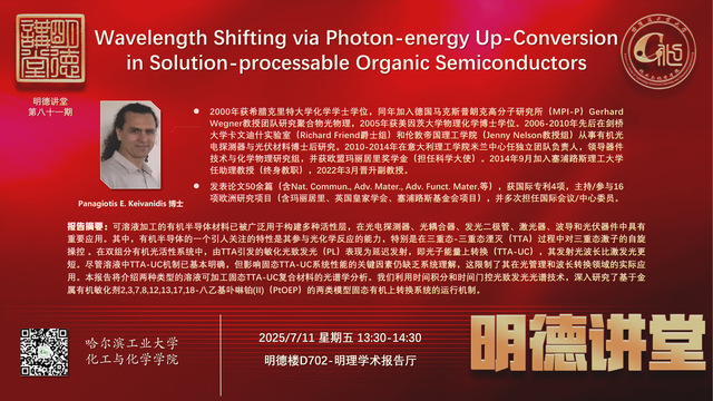 报告题目:Wavelength Shifting via Photon-energy Up-Conversion in Solution-processable Organic Semiconductors