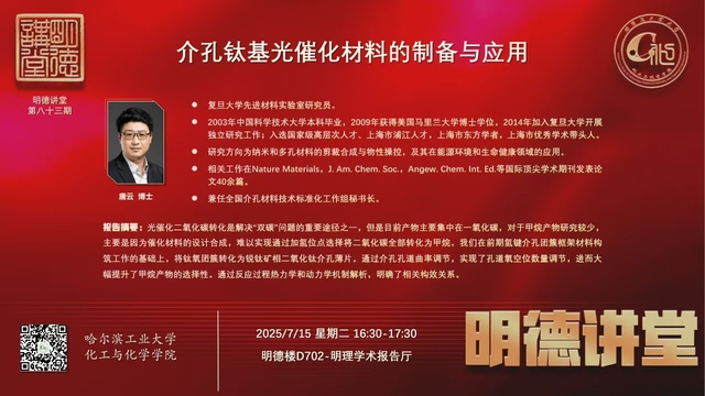 应韩晓军教授邀请,复旦大学先进材料实验室唐云研究员到公司进行学术访问,并开展公海赌赌船官网jc710“明德讲堂”学术报告,欢迎广大师生参加。